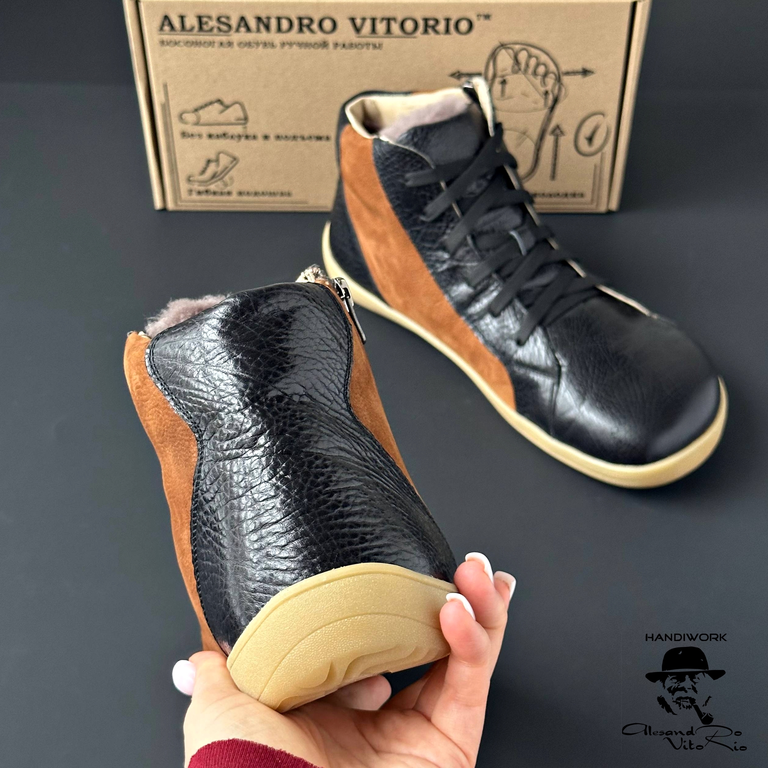 Босоногие ботинки "BRUNO" - это сочетание практичности, стиля и инноваций. Изготовленные из высококачественной замши, кожи или нубука, они обеспечивают исключительный комфорт, долговечность и элегантный внешний вид. Модель доступна в трех вариантах: без утепления для теплой погоды, с утеплением байкой для прохладных дней или с натуральной овчиной для зимних морозов. Функциональная молния делает процесс надевания и снятия быстрым и удобным, а гибкая подошва AV FlexBiom с эффектом barefoot позволяет вашим ногам двигаться естественно, сохраняя ощущение свободы в любых условиях.