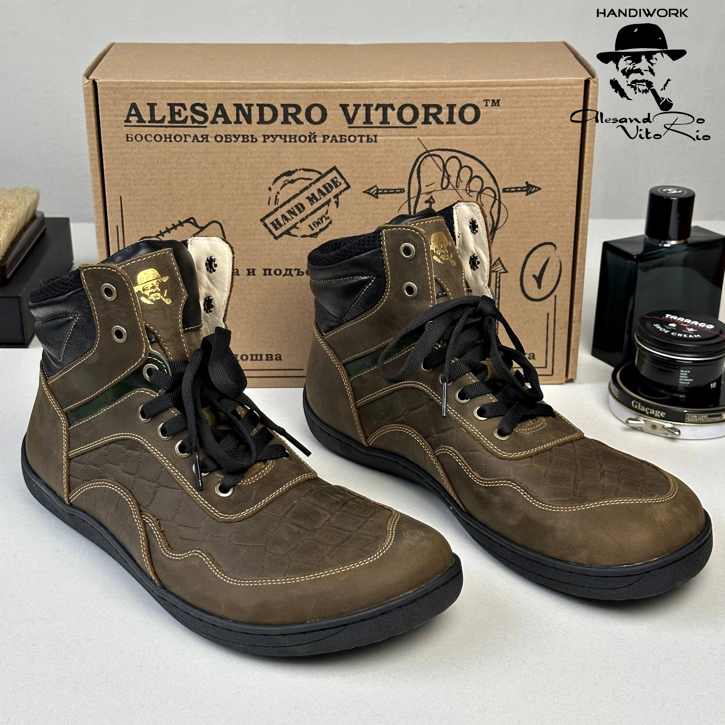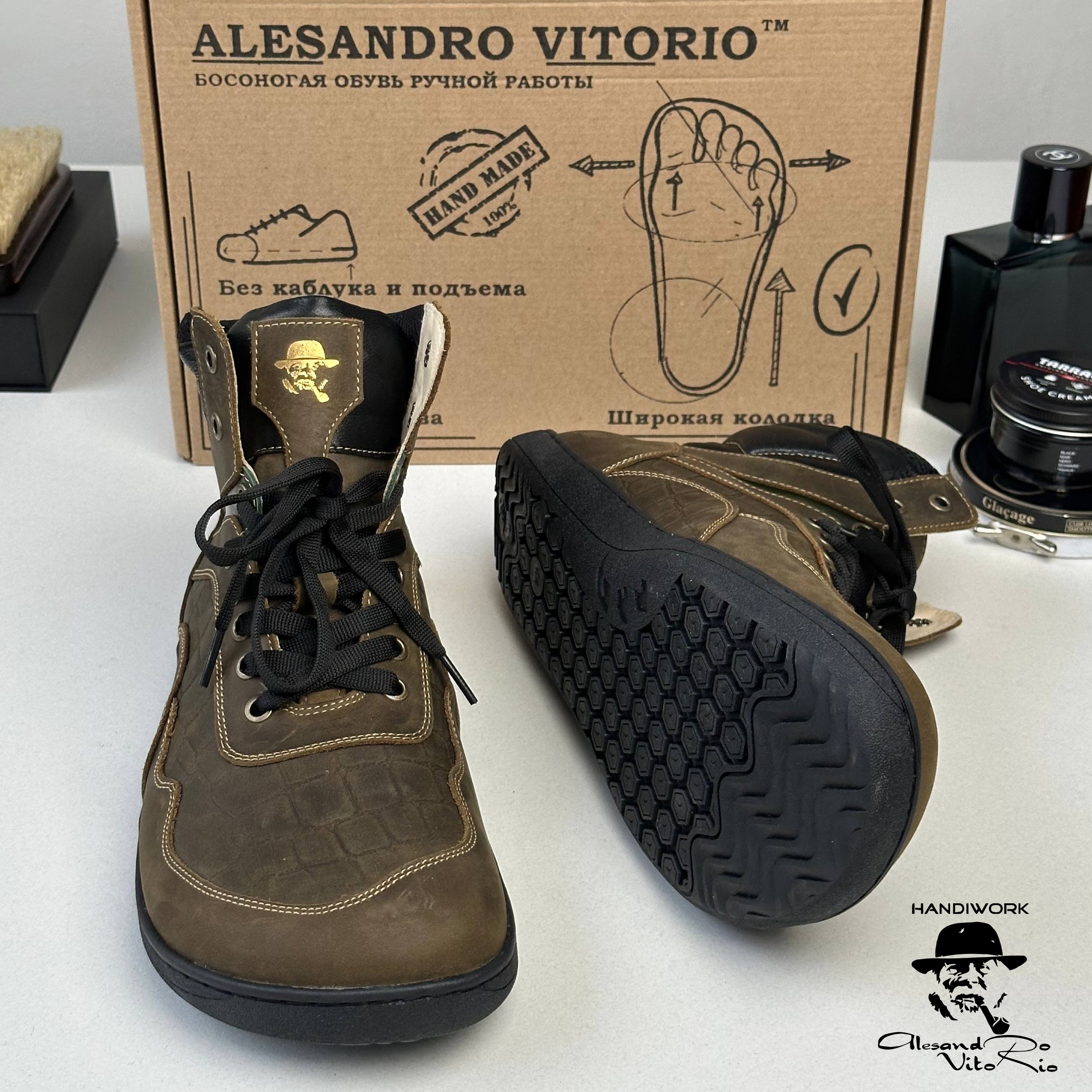 Босоногие ботинки TERRA - это идеальный баланс между комфортом и стильным дизайном. Изготовленные вручную из натуральной телячьей кожи Crazy Horse в сочетании с кожей с эффектом тиснения Кроко, они подчеркивают вашу индивидуальность и обеспечивают исключительное удобство. Гибкая подошва с эффектом barefoot позволяет вашим ногам двигаться естественно, делая каждый шаг легким и уверенным.